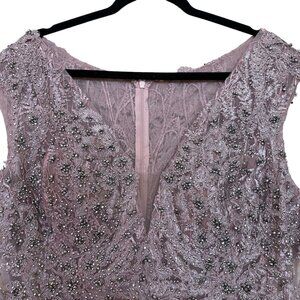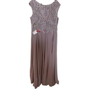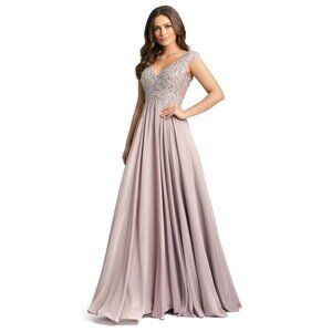Mac Duggal Gown Dress Size 18 Appliquéd Cap Sleeve Bodice Flowy Lilac 20264 $598