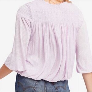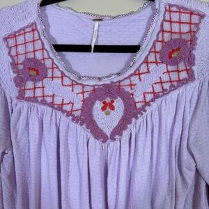 Free People Begonia Embroidered Smocked linen blend Blouse size Medium