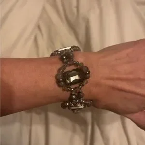 Enhance your style with this chic bracelet featuring a captivating blend of silver and gray gemstones. Perfect for any occasion.