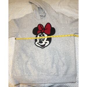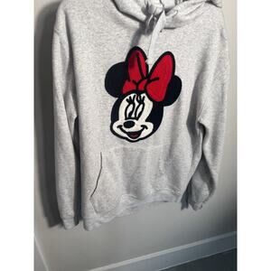 Disney Minnie Mouse Licensed Hoodie Crochet Patch Sweatshirt Heather Grey Size L