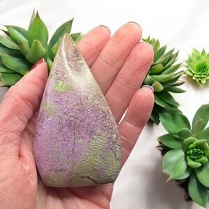 Atlantisite, a combination of stichtite in serpentine, is a rare stone found mainly in Tasmania, Australia. Its teardrop tower form enhances focus and clarity. Metaphysically, it's known for promoting emotional healing, peace, and spiritual growth, while grounding and protecting energy.