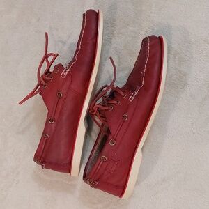 Polo Ralph Lauren Bienne II LU-BTS Mens Red Leather Boat Loafer Shoes Sizs 8.5 D
