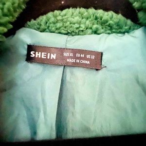 SHEIN Green Teddy Jacket with Leopard Print Lining