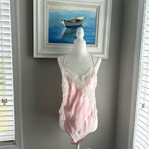Vintage 80s Victorias Secret Gold Label Pink Lace Nightie Sexy Bodysuit Medium