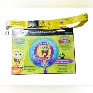 New in package Spongebob Lanyard with key ring and Spongebob "Happy Birthday Singing Balloon" measures 28 inches, shape is round. Perfect for a SpongeBob Birthday party or just to put on your shelf if you're a true SB collector!