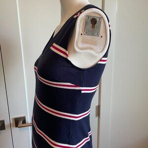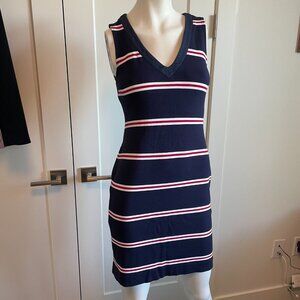 Banana Republic Slvless VNeck Fitted Stripe Mini Dress Navy Wht Red XS - no tags