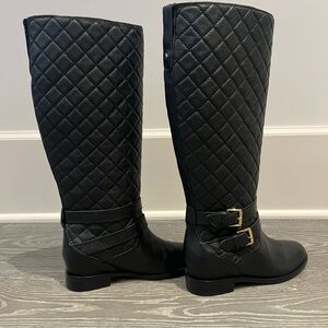 NWOT Kate Spade Sutton Quilted Riding Pull On Boots. Black/gold buckles 6 1/2