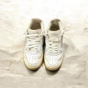 Stylish Nike sneakers in white and cream. Perfect for casual wear. Comfortable and durable design.