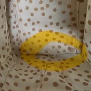 Dual pull zippered top closure; Kate Spade nameplate logo on the front Dual handles with a drop of 4.5"