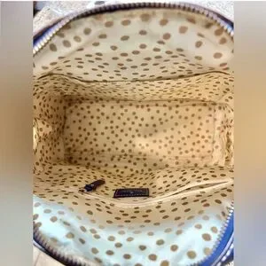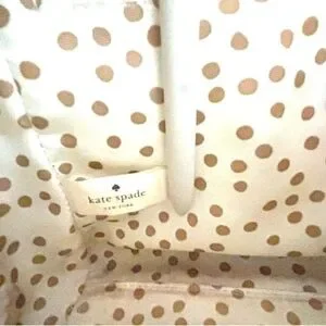 Finished with gold-tone hardware and Kate Spade's signature nameplate, it unzips to reveal a poka dot interior.