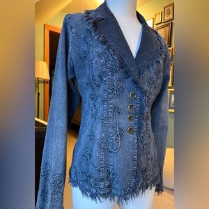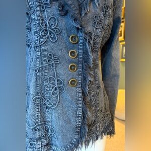 Boho Giovanni Hawaii Jacket in 100% Peruvian Cotton Hand Embroidery & Frayed Hem