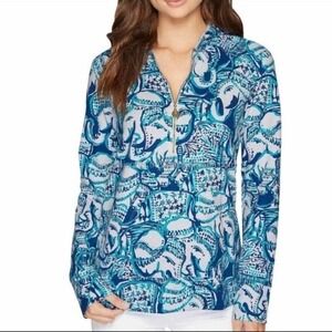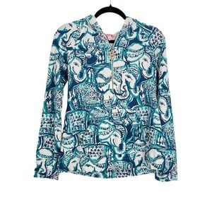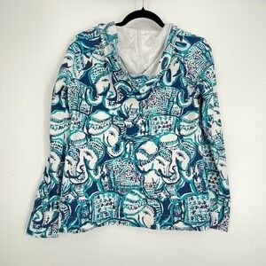 Lilly Pulitzer Resort Coastal Grandma Turquoise Elephant Full Zip Hoodie Small