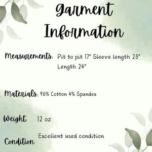 Measurements: Pit to pit 17" Sleeve length 23" Length 24"