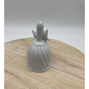White Ceramic Angel Bell Figurine Cherub Sitting On Bell Decorative Collectible