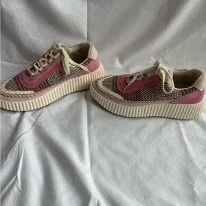 Chic sneakers with pink and cream details. Ideal for everyday style.