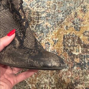 - Brown snakeskin leather booties