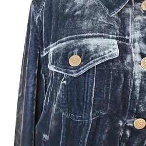 Sundance Wren II blue silk blend velvet jacket! Women's size medium with the following approximate measurements laying flat: shoulder to shoulder: 17.5", armpit to armpit: 19", shoulder to bottom of sleeve: 24", shoulder to bottom hem: 21", and width of bottom hem (buttoned): 19.5". Excellent pre-owned condition with gentle use. Gorgeous blue color, soft viscose and silk blend fabric, long sleeves, button closure, and pockets! Perfect dressed up or down, and a beautiful addition to your closet! Grab this beauty today!