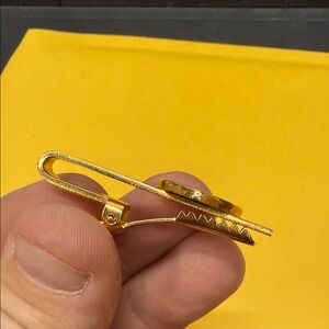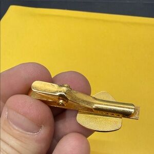 Elegant gold tie clip featuring a distinctive thistle emblem. Perfect for adding a touch of sophistication to any outfit.