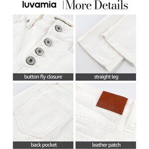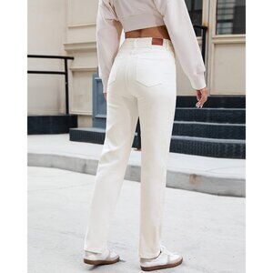Features: These trendy high-waisted jeans have a straight-leg silhouette with a 29-inch inseam, crafted from soft, stretchy denim (98% cotton, 2% elastane). Classic five-pocket design and a button fly make them versatile for day-to-night looks.