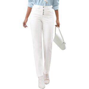 High Waisted Womens Jeans Stretchy Denim Straight Leg with Pockets for Casual