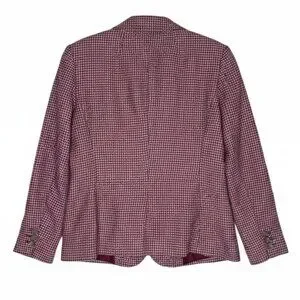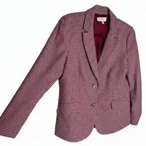 Talbots Wool Blend Houndstooth Print Blazer Jacket Size 12 Pink Burgundy Red EUC