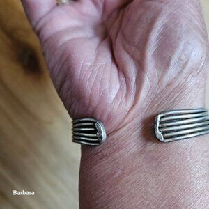 "Vintage 70s Silver-tone Metal Celtic Knot Open Cuff Bracelet Unisex. Thick metal. Hand-threaded. Adjustable.