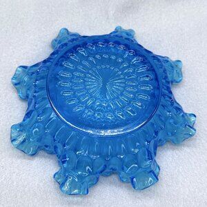 Vintage Fenton 7.5" Colonial Blue Thumbprint Ruffle Crimped Edge Candy Dish