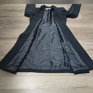 Tahari Black Trench Coat Gold Buttons Military Old Money Preppy Nautical