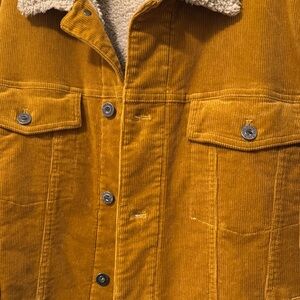 Stylish tan corduroy jacket with a warm sherpa collar. Ideal for layering in cooler weather.