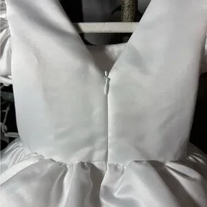 Satin White Flower Girl Puff Sleeve Dress- 2T Made in Ukraine