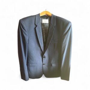 Sandro Men’s Elegant Deep Blue 100% Wool Suit Jacket Preppy Luxury Blazer Used