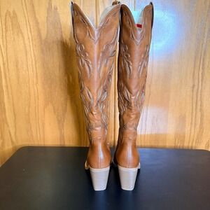 ISNOM Women's Sz 8.5 Brown Leather Western Cowboy Boots Block Heel Knee High