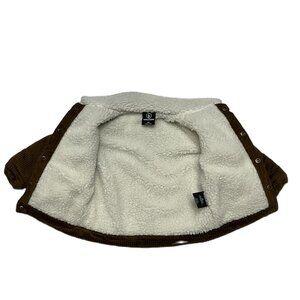 Keep your little guy warm and stylish with this adorable Volcom jacket! Made with a rich brown corduroy exterior and a cozy white faux shearling lining, it’s perfect for cooler weather. Features classic gold Volcom snap buttons for an extra touch of style and easy on/off.