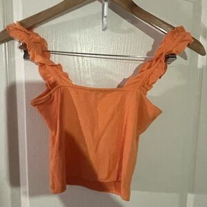 Elevate your style with the orange ruffled crop top. Perfect for any occasion, this vibrant piece adds a touch of flair to your wardrobe.