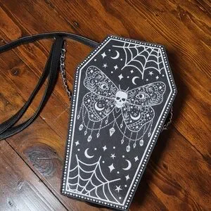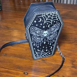 Claire's Black Coffin Crossbody Bag Skull Moth