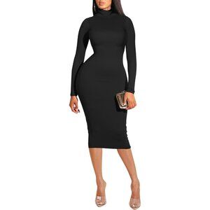 Womens Knit Dress Long Sleeve High Neck Bodycon Midi Warm Fall Winter