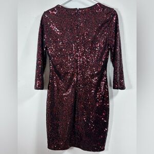 Express Deep Red & Black Sequin V-neck Long Sleeve Lined Holiday Dress Size 6