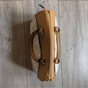 Calvin Klein White & Tan Monogram Signature Everlee Satchel Handbag
