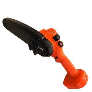 Ideal for precision cutting and trimming, this Tietoc mini cordless chainsaw features a 6-inch blade, 2 rechargeable batteries, and portable design, packed in a durable carrying case. Original box not available.