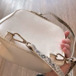 FREE PEOPLE Cream White Grey Convertible Backpack Crossbody Bag aprox H7"xW6.5" NEW with animal snakeskin print on straps. Trending grey and white snake skin animal print on mostly white cream color Bag Backpack. New with out tags. MAKE AN OFFER
