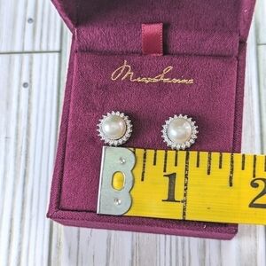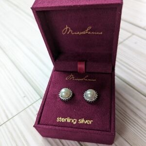 Mia Sarine Freshwater Pearl Cubic Zirconia Sterling Silver Stud Earrings NWT