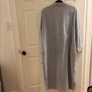 Upgrade your wardrobe with this stylish black and white striped shirt dress. Perfect for casual outings, this dress combines comfort with a modern look.