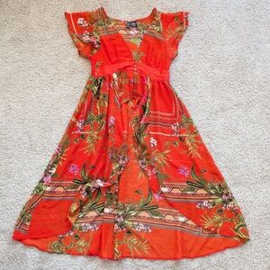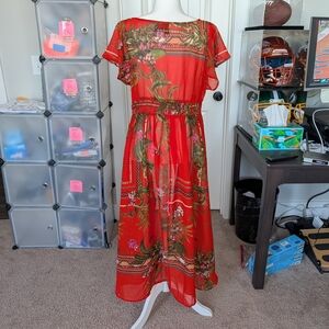 Windsor Red Green Purple Floral High-Low Dress Size Large
