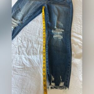 Stylish distressed blue jeans by Judy Blue. Size 14w. More of a skinny fit. See pictures for measurements and fabric content. Stretchy lightweight denim that feels great on.