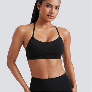 CRZ YOGA - Black Padded Racerback Low Impact Spaghetti Thin Strap Sports Bra