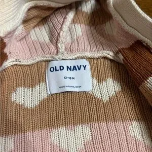 Old Navy Heart Knit Cardigan Hoodie 12–18M beige neutral