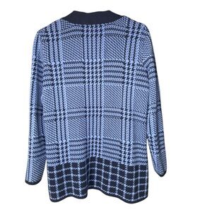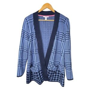 Isaac Mizrahi Live! Plaid Jacquard Sweater Cardigan Navy Plaid MEDIUM
