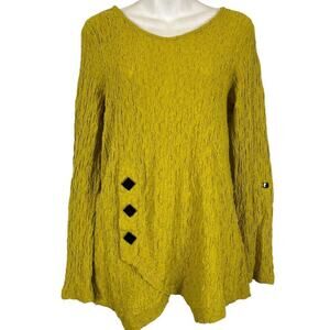 Ali Miles Womens Green V-Neck Long Sleeve Stretch Lagenlook Top Asymmetrical S