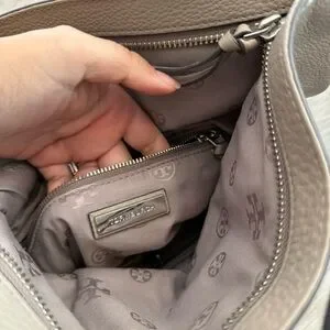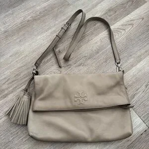 Tory Burch Thea Fold-Over Beige Pebbled Leather Crossbody Bag