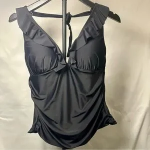 Ellen Tracy Charcoal Ruffle Swimsuit Top